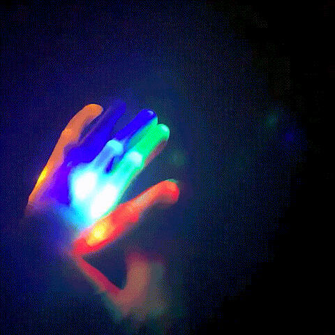 - Fem farver: LED-handskerne har 5 farver og 6 lyseffekter og 6 justeringstilstande, der kan skiftes ved at trykke på ON/OFF-knappen.